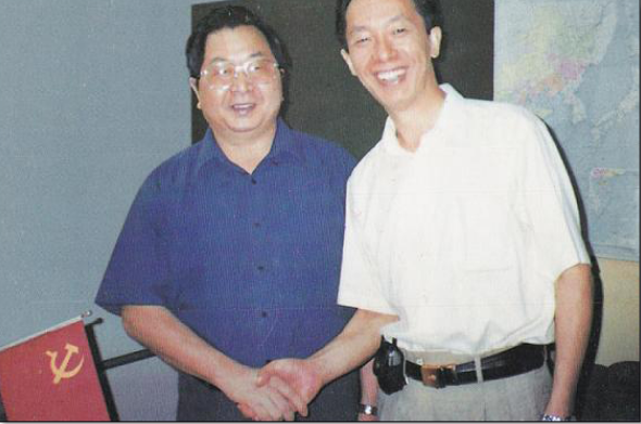 2001年4月,时任湖南省人民政府副省长庞道沐(左)来我校指导工作