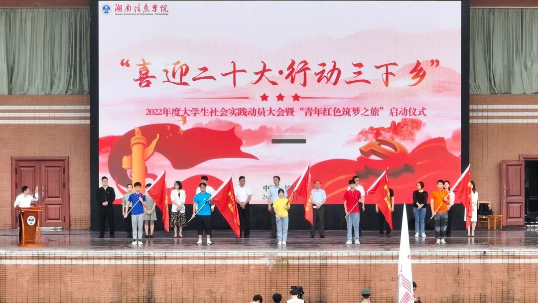 5月30日,伟德官网下载手机版师生齐聚东院运动场,隆重举行2022年度大学生社会实践活动暨“青年红色筑梦之旅”启动仪式,校长黎大志为各社会实践代表队授旗,党委副书记姜佐澧作动员讲话,学生高唱《国歌》展示了湘信青年的青春热血。