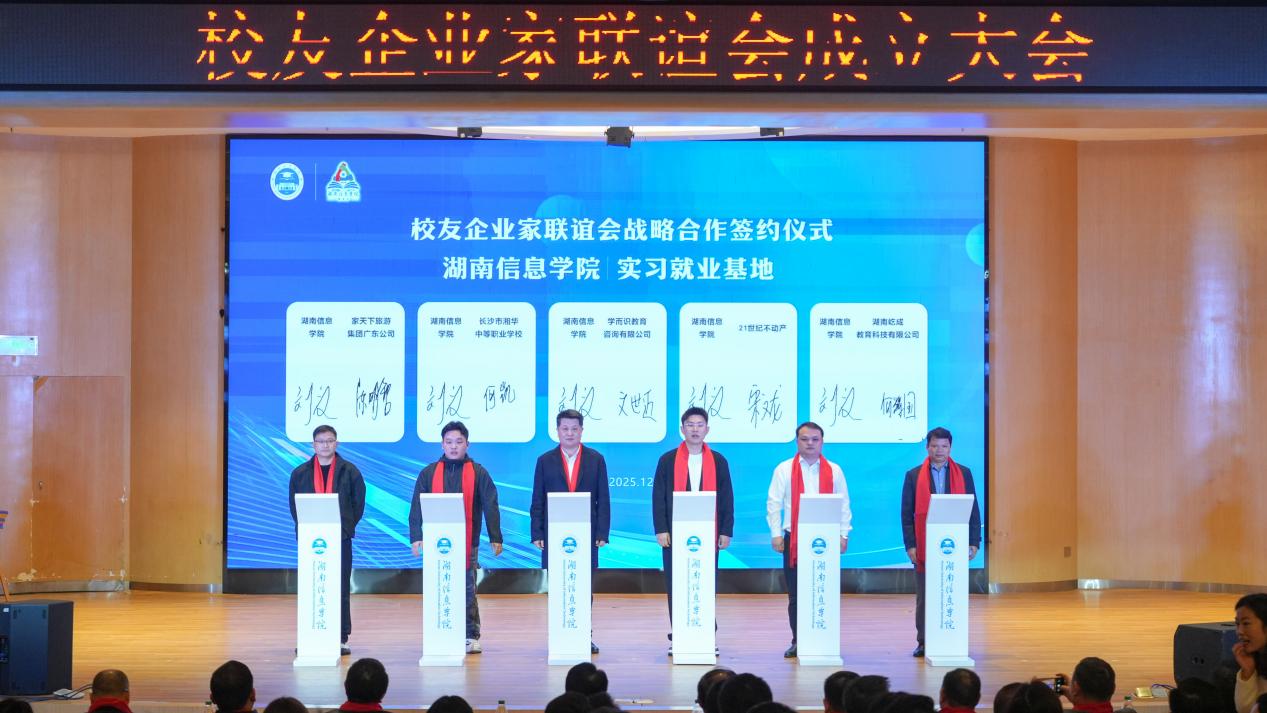 大会期间,还举行了校企合作签约仪式。学校与多家校友企业代表现场签署了“学生实习就业基地”和“产教融合基地”合作协议。这些基地的建立,将进一步拓宽学生实习就业渠道,深化人才培养模式改革,推动教育链、人才链与产业链、创新链有机衔接,更是母校与校友企业协同育人的新起点,校友企业回馈母校的直接体现,彰显了校企双方主动融入湖南发展大局的责任与担当。